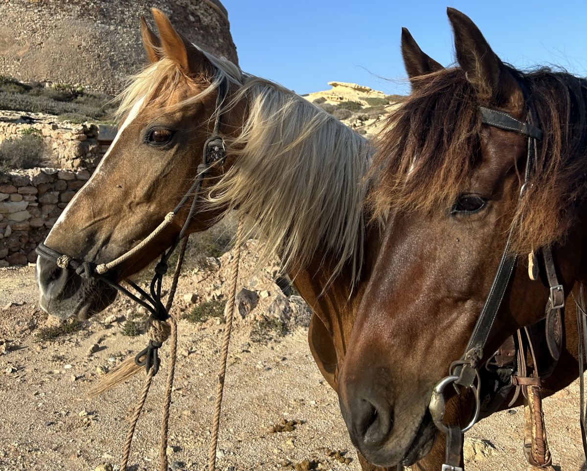 Après avoir fait connaissance avec les chevaux, on se dirige vers la vallée de Rodalquilar, où les Romains avaient l'habitude de séjourner et qui est célèbre pour ses mines d'or. C'est pourquoi il y avait beaucoup de pirates sur la côte. Vous emprunterez des chemins étroits le long de la côte, vous passerez devant de petites tours et des points de vue, qui servaient autrefois à la surveillance. En chemin, vous ferez une pause pique-nique à la mer. Le soir, vous atteignez la célèbre plage El Playazo avec le château San Ramon. Nuitée à Rodalquilar.