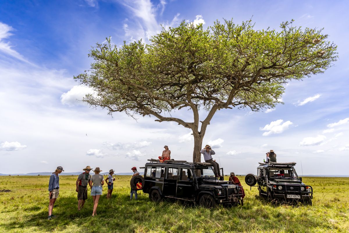Vous pouvez rejoindre Borana soit par un vol charter privé, soit après un trajet de trois heures et demie en voiture depuis Nairobi. Borana est une ferme d'élevage de bovins transformée en réserve naturelle, située dans un paysage intact sur les pentes nord du mont Kenya, avec une vue magnifique sur les sommets enneigés de la montagne au sud et les montagnes escarpées de la Mathews Range, Bodich et même Marsabit sur le chemin de la frontière éthiopienne. Il abrite les Big Five et une multitude d'autres espèces animales comme le zèbre de Grévy, l'autruche de Somalie, la girafe réticulée et d'autres espèces rares. Nous prenons le déjeuner au camp, dans un bosquet d'euphorbes.