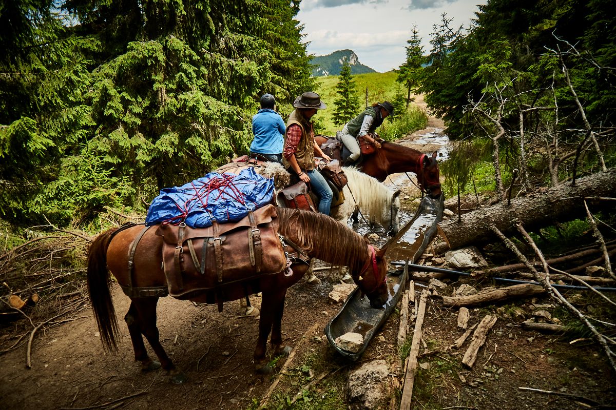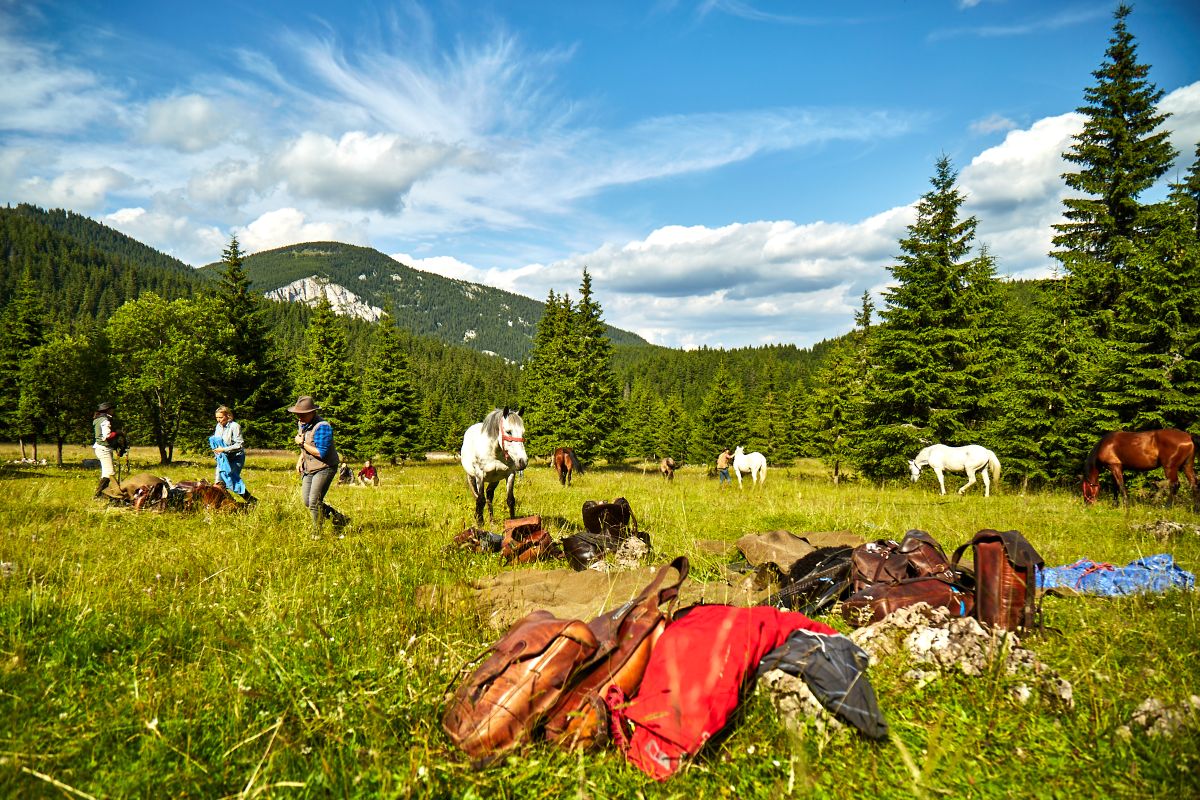 Jour 3 : Après un riche petit-déjeuner, votre aventure commence ! La première étape monte légèrement à la source d'un ruisseau clair où vous remplissez votre bouteille et abreuvez les chevaux. Plus loin, le sentier mène principalement à travers les forêts. Vers midi, vous atteindrez la montagne Sipos (1.568m), où vous pourrez vous reposer et profiter d'une belle vue sur la partie nord des montagnes Harghita. Dans l'après-midi, vous vous rendrez sur un plateau qui sera votre campement pour la nuit, où vous préparerez votre dîner au coin du feu. (environ 3,5 heures)