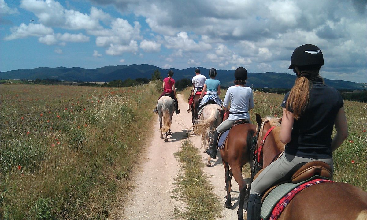 Vers 10 heures du matin, vous commencerez à longer la rivière Lente, qui vous mènera au village fortifié de Castel Ottieri (les Ottieri étaient une famille noble très influente au Moyen Âge). Avant le pique-nique, vous monterez à cheval pour visiter le village médiéval. Dans l'après-midi, vous quitterez la forêt et profiterez d'une balade sur de larges sentiers qui vous invitent à de beaux et longs galops. Vous apprécierez la vue sur de larges collines jusqu'au Proceno médiéval. Vous y accéderez par des chemins sinueux, qui vous mèneront à travers des buissons odorants. Vous passerez la nuit dans le magnifique château de Proceno, qui appartient à une famille séculaire de Ferance. Les propriétaires du château seront heureux de vous inviter à le visiter. Si vous le souhaitez, vous pouvez vous détendre dans la piscine avant le délicieux dîner. Temps de parcours : environ 4,5 heures